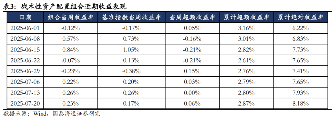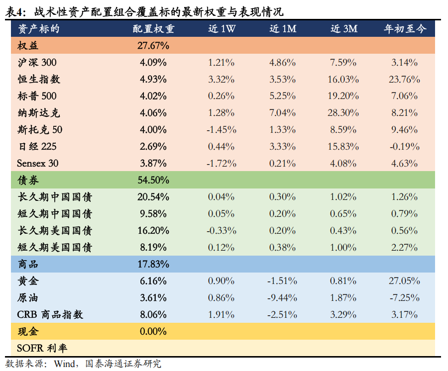 战术性资产配置组合覆盖标的最新权重与表现情况如下。